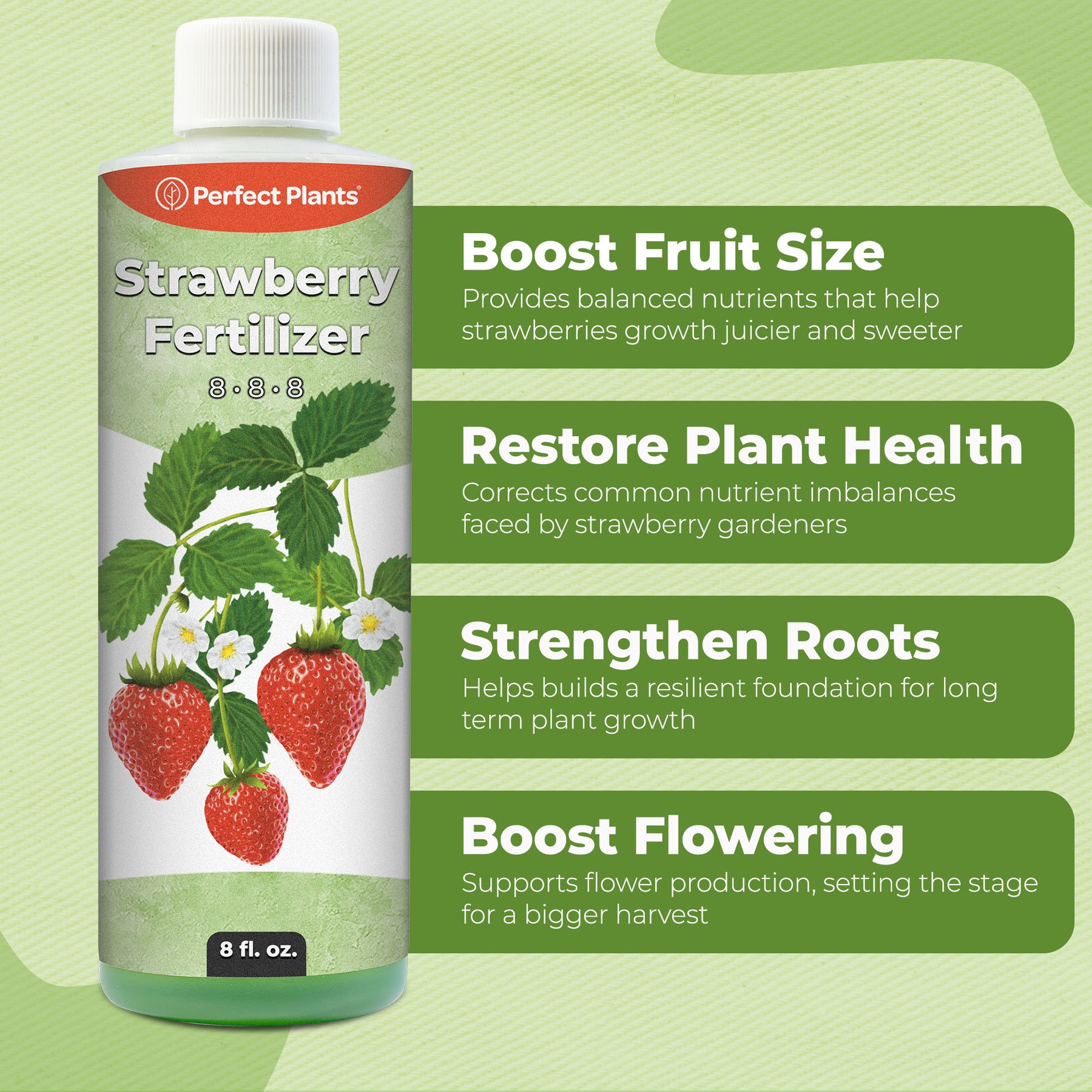 Give your garden the boost it deserves with Liquid Strawberry Fertilizer from Perfect Plants, a balanced and easy-to-use strawberry plant fertilizer designed to support vigorous growth, healthy roots, and abundant fruit production. Specially formulated for home gardeners, this premium fertilizer for strawberries provides reliable nutrition throughout the active growing season.