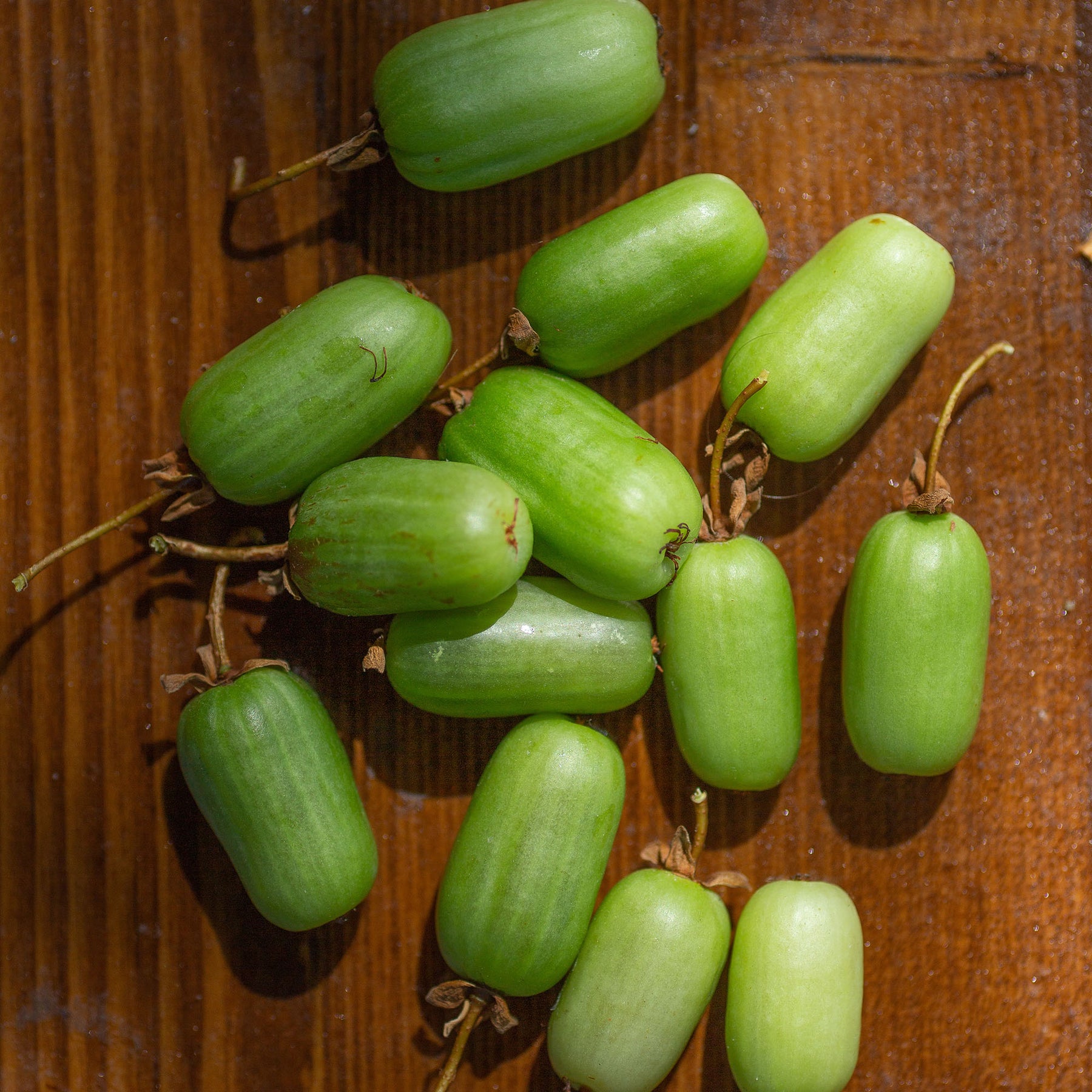 Fuzz-Free Kiwis You Eat Whole. Smooth-skinned, grape-sized kiwiberries with bright green flesh ; no peeling, no fuss. The flavor is sweet, aromatic, and noticeably richer than store-bought kiwi. Eaten at true home-grown ripeness, it's on another level.